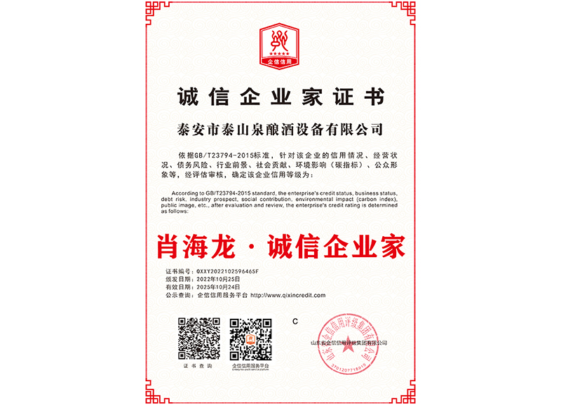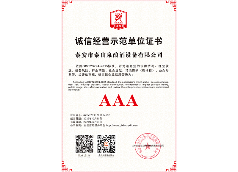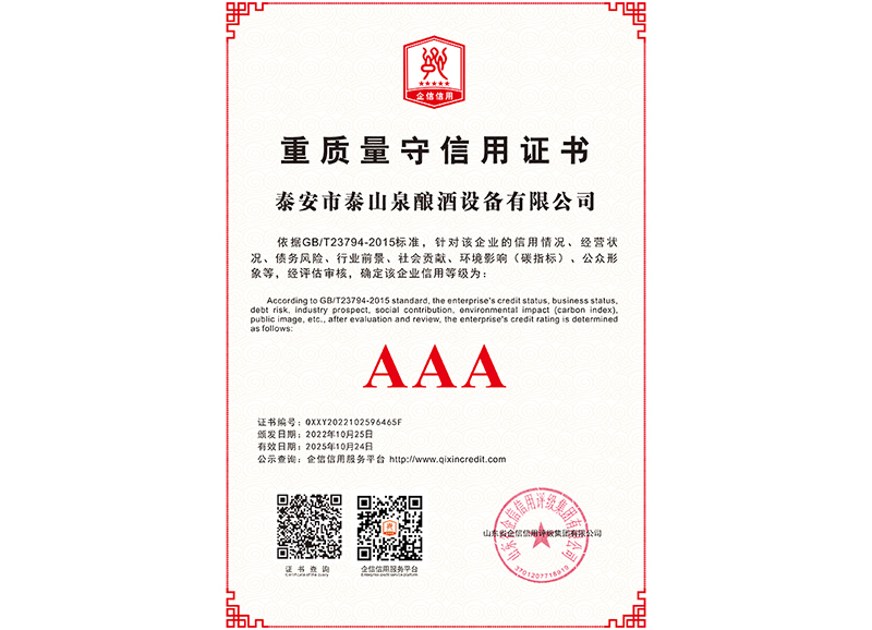 泰安市泰山泉釀酒設(shè)備有限公司,是一家專業(yè)從事釀酒設(shè)備機(jī)械化研發(fā)并集技術(shù)咨詢,工程設(shè)計(jì),制造安裝,人員培訓(xùn)及售后服務(wù)為一體的綜合性企業(yè),本公司主要產(chǎn)品為:大曲清香、小曲清香、大曲醬香、大曲濃香等香型白酒機(jī)械化設(shè)備。  本公司與中國科學(xué)院自動化研究所簽訂技術(shù)服務(wù)合同,引進(jìn)先進(jìn)技術(shù),研究生產(chǎn)全自動化機(jī)械釀酒設(shè)備,由中國科學(xué)自動化研究所的技術(shù)支持,打造最先進(jìn)的生產(chǎn)釀酒設(shè)備,公司有信心打造全國最先進(jìn)白酒...